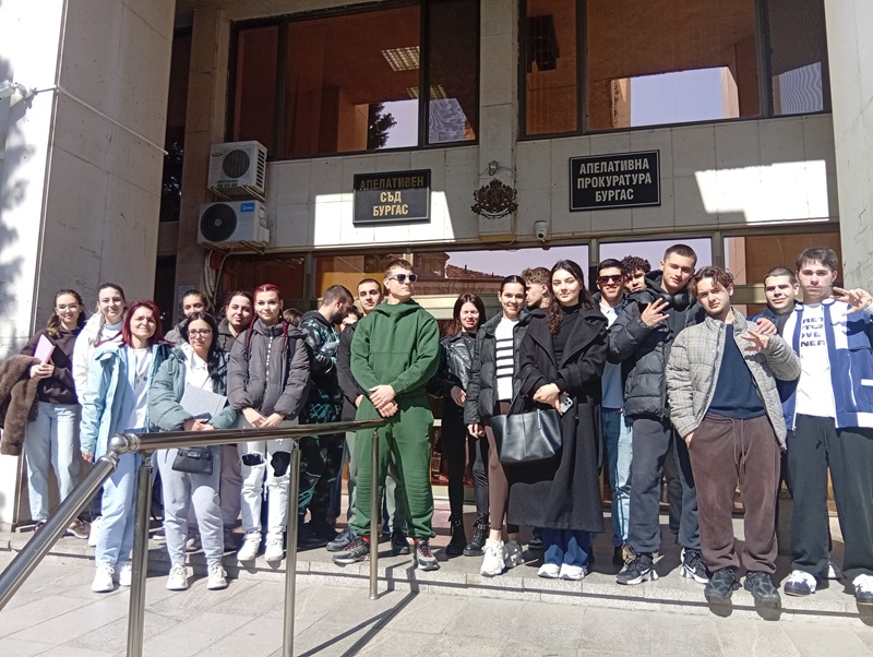 Бургаският апелативен съд отвори врати за абитуриенти от 12 „е“ клас на Професионалната гимназия по строителство, архитектура и геодезия /ПГСАГ/ „Кольо Фичето“ в града. Учениците от специалност „Недвижими имоти“ проведоха среща председателя на Апелативен съд – Бургас Пламен Синков на тема „Транспортни престъпления“.